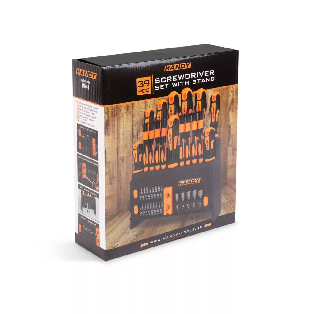 A Handy csavarhúzó készletével könnyedén és gyorsan dolgozhat. A szárak nagy szilárdságú CR-V anyagból készültek, így ellenállnak a kopásnak. Az ergonomikus, csúszásgátló anyagból készült nyél, kényelmes és biztonságos munkavégzést garantál.