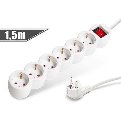 Általános, fehér elosztó kapcsolóval, amely használata javasolt háztartásban, irodákban. Jó minőségű, vastag szigetelése megvédi a kábelt a sérülésektől, a kábel esetleges megtörésétől.