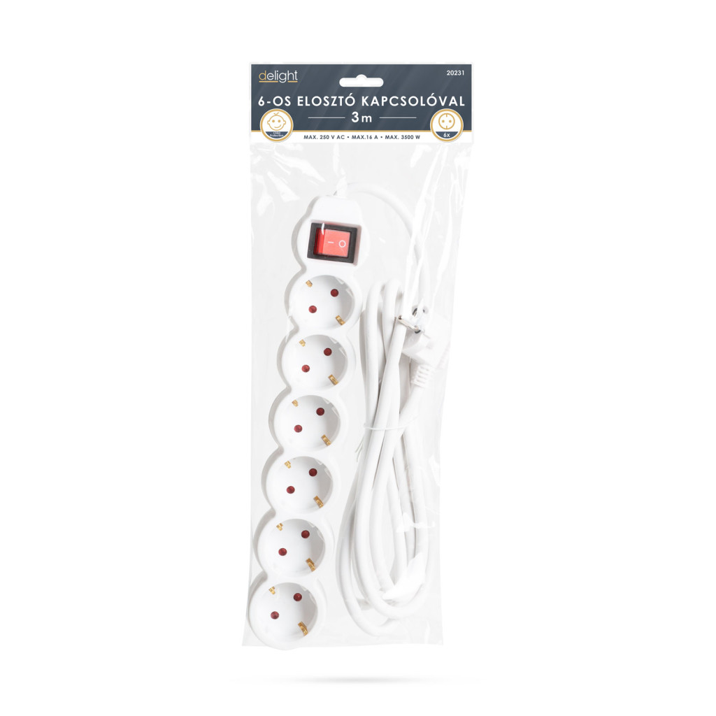 Általános, fehér elosztó kapcsolóval, amely használata javasolt háztartásban, irodákban. Jó minőségű, vastag szigetelése megvédi a kábelt a sérülésektől, a kábel esetleges megtörésétől.