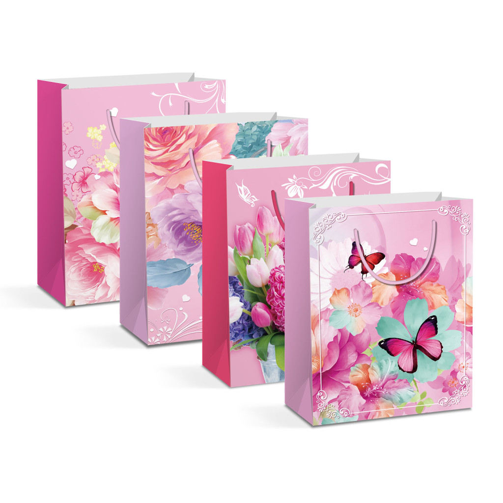 Ajándéktasak - papír - 330 x 102 x 457 mm - 4 féle / csomag - 12 db / csomag