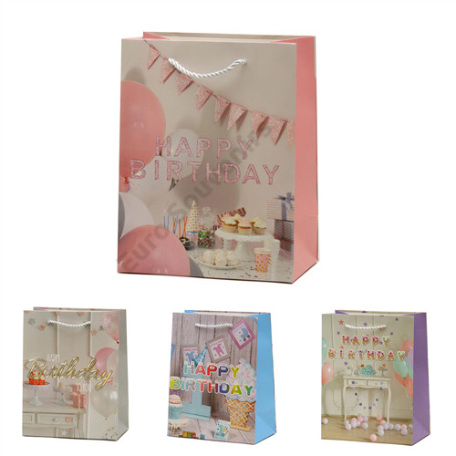 AJÁNDÉKTASAK SZÜLINAPOS 12/480 26x32x10 cm 4 FÉLE
