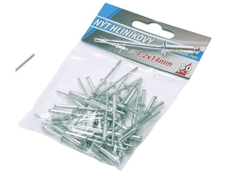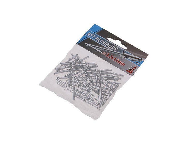 Klasszikus redőny alumínium szegecsek, átmérő 3,2 mm, hossza 12 mm, 50 db-os kis kiszerelésben, kisfogyasztóknak megfelelő.