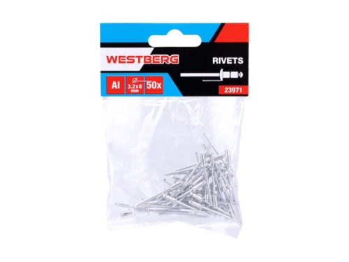 Klasszikus redőny-alumínium szegecsek, átmérő 3,2 mm, hossza 8 mm, 50 db-os kis kiszerelésben, kisfogyasztóknak megfelelő.