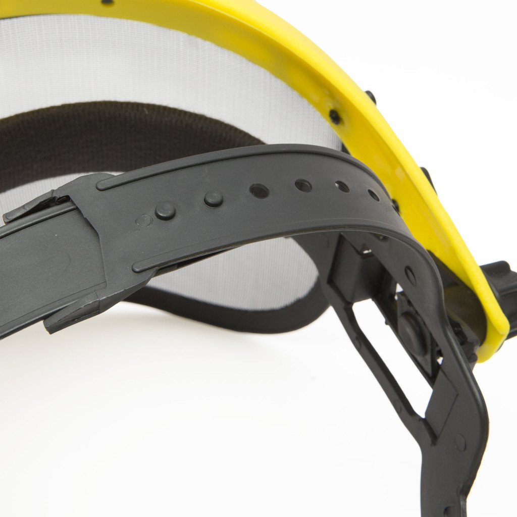 Egész arcot védő, fejpántos dróthálós pajzs Láncfűrészes vágás, fejszés aprítás alkalmával védi a fejet repülő forgácsoktól vagy bozótvágó használatakor repülő apró kövektől, jól szellőző.