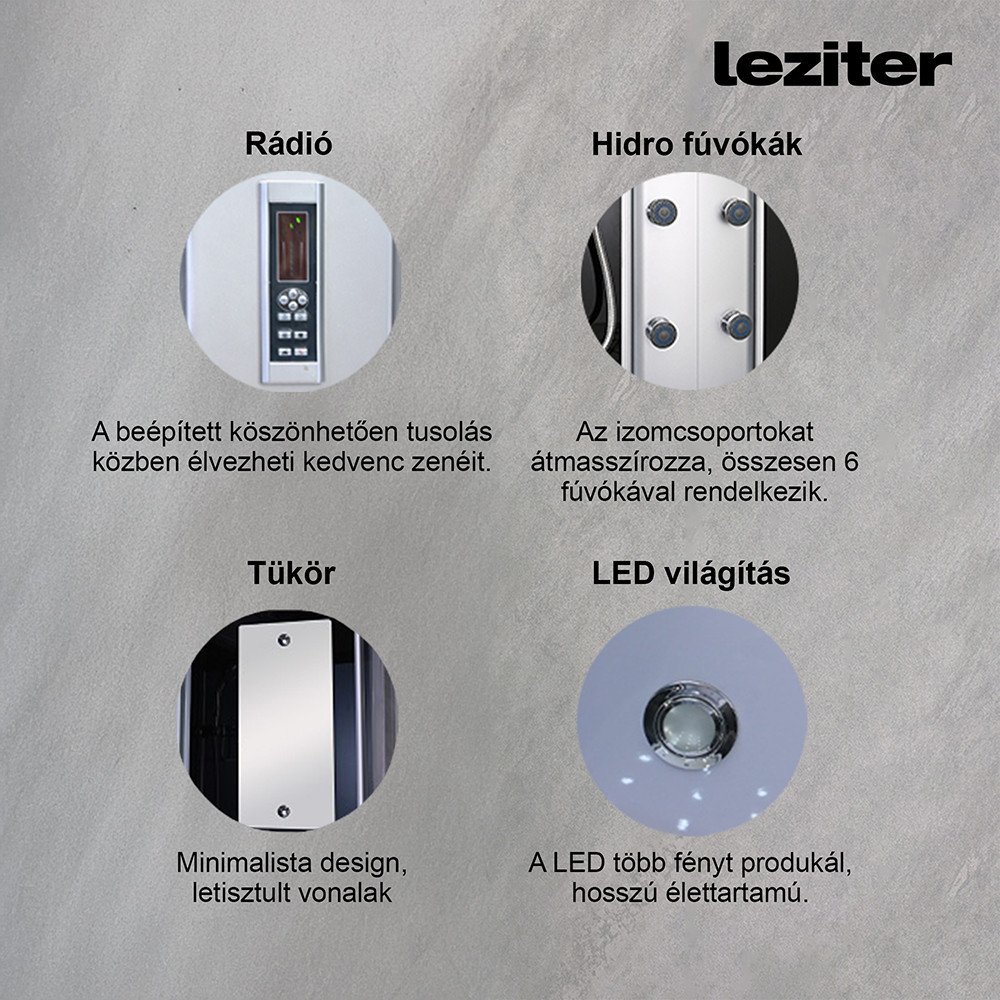 Leziter GM6415 Hidromasszázs zuhanykabin balos beépítési oldallal telepítés zuhanytálcára