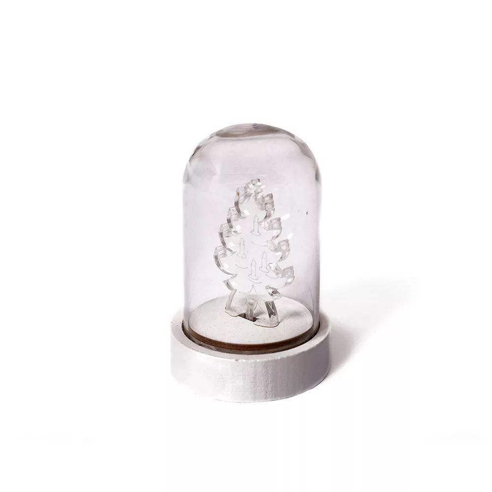 Varázsolj ünnepi hangulatot otthonodba ezzel a különleges, fenyőfa formájú üveg asztaldísszel! A 9 cm-es dekoráció belsejében melegfehér LED fény ragyog, amely meghitt, otthonos atmoszférát teremt a sötét téli estéken. Kompakt méretének köszönhetően könnyedén elhelyezhető az asztalon, komódon vagy akár az ablakpárkányon, így bármely helyiség stílusos ünnepi kiegészítője lehet.