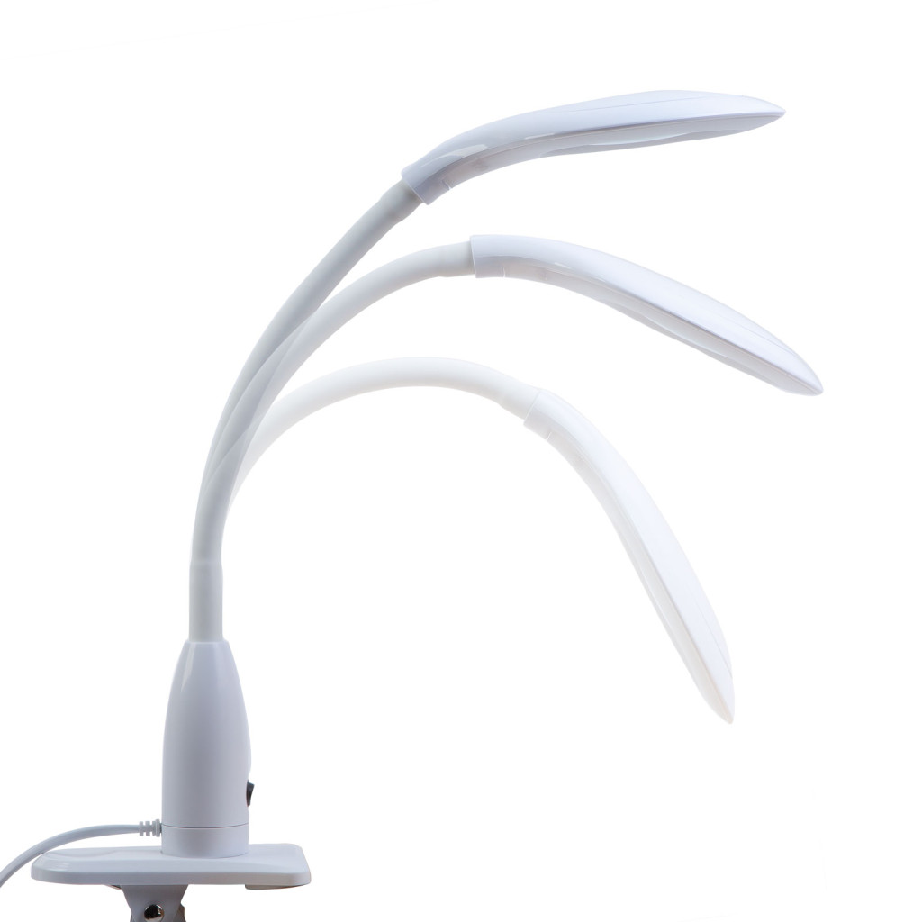 Asztali LED lámpa - nagyítóval - csipeszes - fehér