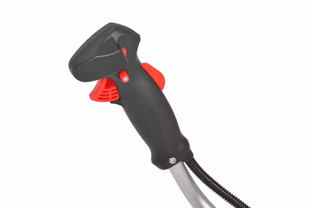 A kényelmes és biztonságos fogás érdekében a fogantyúk ergonomikus kialakításúak és csúszásmentes réteggel vannak ellátva, a gázkapcsoló pedig biztonsági retesszel is fel van szerelve. A teljes fogantyú a felhasználó alakjának megfelelően az optimális szögbe állítható. A csekély, mindössze 5,9 kg-os súlynak és az állítható vállpántnak köszönhetően akasztható, kellemes a munka a bozótvágóval és nem növekszik feleslegesen.