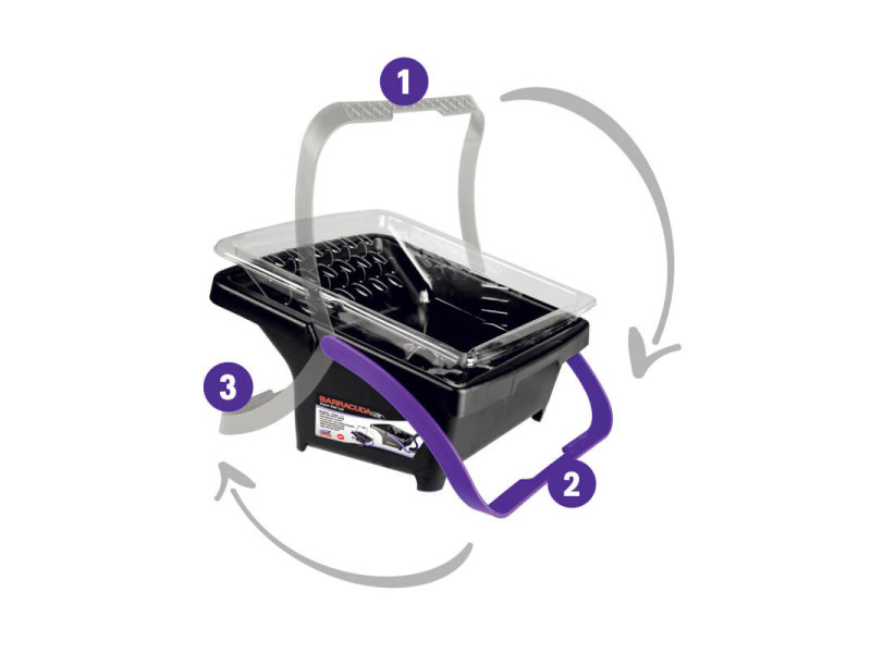 Űrtartalom: 9 liter10 / 18 / 25 mm-es hengerekhezHárom pozícióban állítható fogantyúGumi lábak megakadályozzák a csúszástA festőhenger tartó megakadályozza a fogantyú beszennyeződésétMélyítés a vödör sarkánál a festék könnyű kiöntéséhezSérüléseknek és repedéseknek ellenálló anyagPerforációkkal rendelkezik a festék leeresztéséhezCserélhető betétek