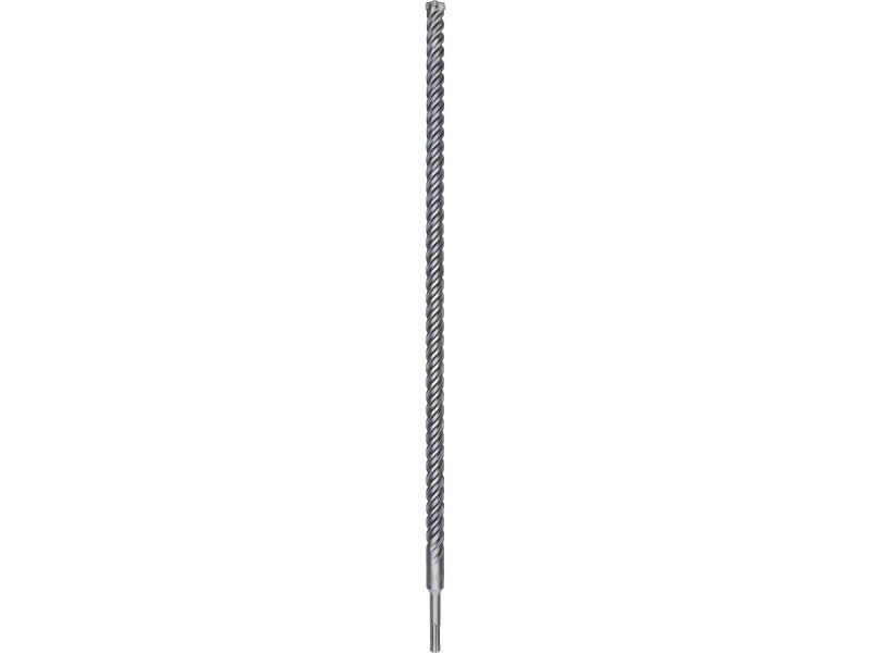 A „ferdeszögű” fej a 4 hornyos kivitel nagy méretű és rövid poreltávolító csatornáival gyors poreltávolítást eredményez, így a fúró gyorsan, kis kopással vágja át a betont és a vasakat