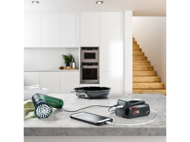 Maradj mindenhol feltöltve: hordozható USB power bank adapter több eszköz gyors töltéséhez Sokoldalú, 18 V-os akkuadapter power bank funkcióval Az USB-C® és USB-A kimenet legfeljebb 5 V/3 A + 5 V/1,5 A áramot ad le kombinálva A beépített állapotjelző tájékoztat a fennmaradó áramról Kompakt kivitel kényelmes fém csipesszel az egyszerű ruhára csíptetéshez POWER FOR ALL: egyetlen akku és töltő a teljes Home & Garden szerszámrendszerhez