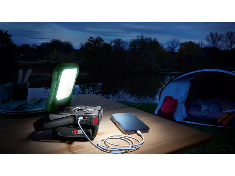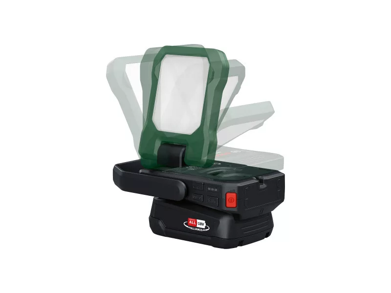Sokoldalú LED-lámpa otthoni és kültéri használathoz Összehajtható és teljesen körbeforgatható világítófej a bármilyen szögben történő megvilágításhoz Rugalmas elhelyezés mágnessel és horoggal 3 fokozatban állítható fényerő, maximum 400 lumen, meleg és hideg fény beállítással Integrált USB-C® power bank: eszközök töltése menet közben Kompatibilis a Bosch 18V POWER FOR ALL akkumulátorral Technikai adatok Feszültség (V) 18 Akkumulátor kompatibilitás 18V POWER FOR ALL ALLIANCE Akkumulátorral együtt (db) Akkumulátor nélkül szállítva Lumen (lm) 400 Súly akkumulátor nélkül (kg) 0,3