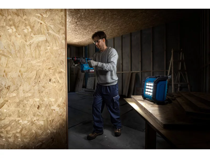 A GLI18V-1500 nagy teljesítményű zseblámpa 1500 lumen fényárammal. Strapabíró zseblámpa IP64-es por és víz elleni védelemmel. Gyorsan és egyszerűen elhelyezhető állványon, munkapadon vagy bármilyen más felületen – kéz nélküli világítás fix helyzetekben. Két fényerőszint választható: 1500 lm és 800 lm.