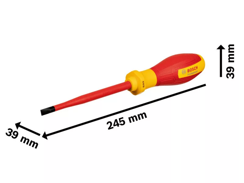 10 000 V feszültségig tesztelve, és 1000 V feszültségig VDE tanúsítvánnyal rendelkezik a DIN EN/IEC 60900 szabvány szerint Precíz és tartós, keskeny szárral és robusztus heggyel a pontos illeszkedésért Kézreálló és kényelmes használat a lágyfogantyúnak és az ergonomikus kialakításnak köszönhetően Szigetelt, egyszerű, kényelmes – Bosch Professional VDE SL6.5x125 csavarhúzó