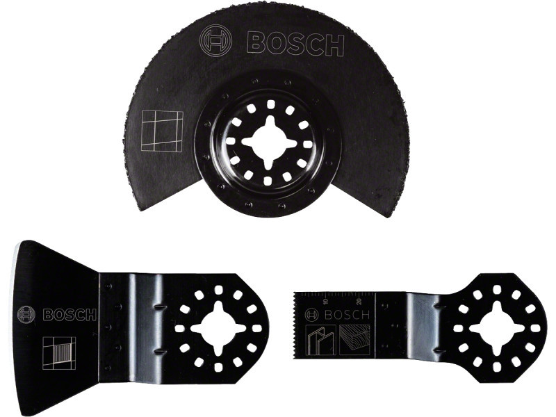 A készlet tartalma: Bimetál merülőfűrészlap fémhez, AIZ 20 AB (1 db), HCS hántoló, ATZ 52 SC (1 db), HM-RIFF szegmens fűrészlap, ACZ 85 MT4 (1 db)
