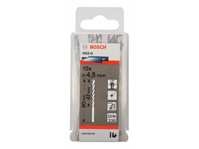 BOSCH Csigafúró 4,5 x 80/47 mm 135° HSS-G DIN 338 (10 db)