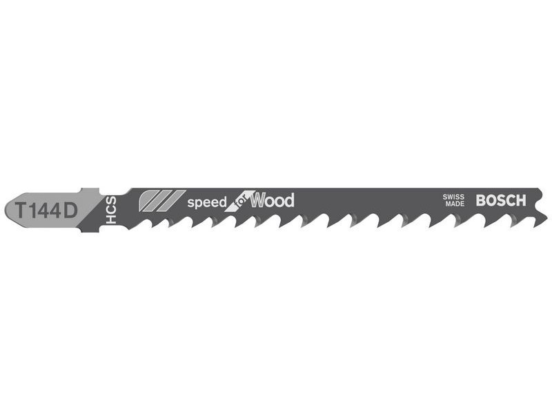 Puhafa gyors vágása - A T 144 D Speed for Wood szúrófűrészlap fa gyors, egyenes vágására alkalmasÉlesre köszörült váltófogazása gyors vágást eredményezA magas széntartalmú acélból készült fűrészlap puhafa és nem abrazív faipari anyagok vágásához használhatóEmellett a fűrészlap ritka (4–5,2 mm), progresszív fogosztása lehetővé teszi különböző, 5–50 mm vastagságú faanyagok vágásátT-Shank befogószáras rögzítő rendszerrel rendelkező szúrófűrészekhez használhatóMinden T befogószárú szúrófűrészhez használható