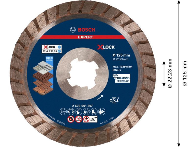 BOSCH EXPERT Gyémánt vágókorong 125 x 2,4 x 12 x 22,2 mm turbo Multi Material X-LOCK (oSa)