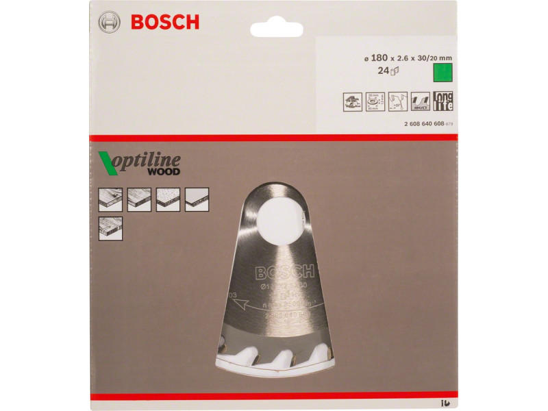 BOSCH Fűrésztárcsa fához 180 x 30/20 x 2,6 mm / 24T Optiline Wood ATB