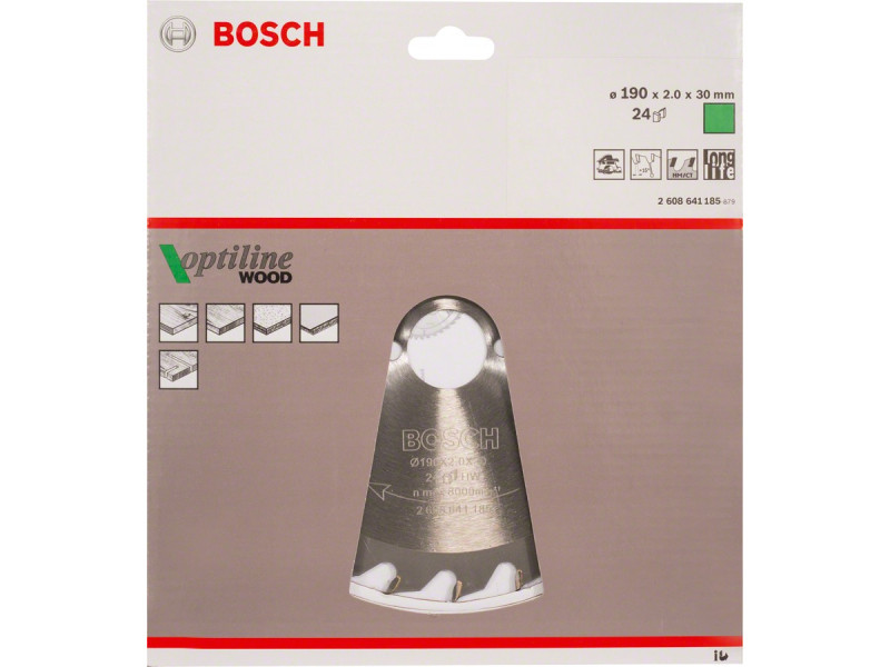 BOSCH Fűrésztárcsa fához 190 x 30 x 2,0 mm / 24T Optiline Wood ATB
