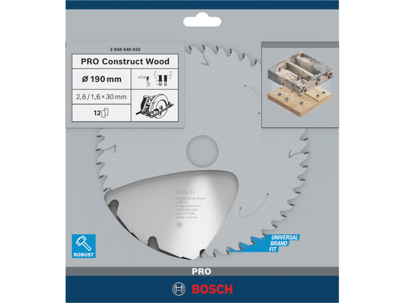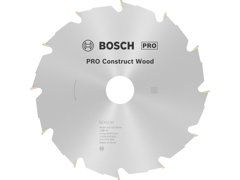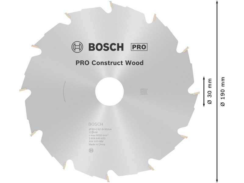 BOSCH PRO Fűrésztárcsa fához 190 x 30 x 2,6 mm / 12T Construct Wood