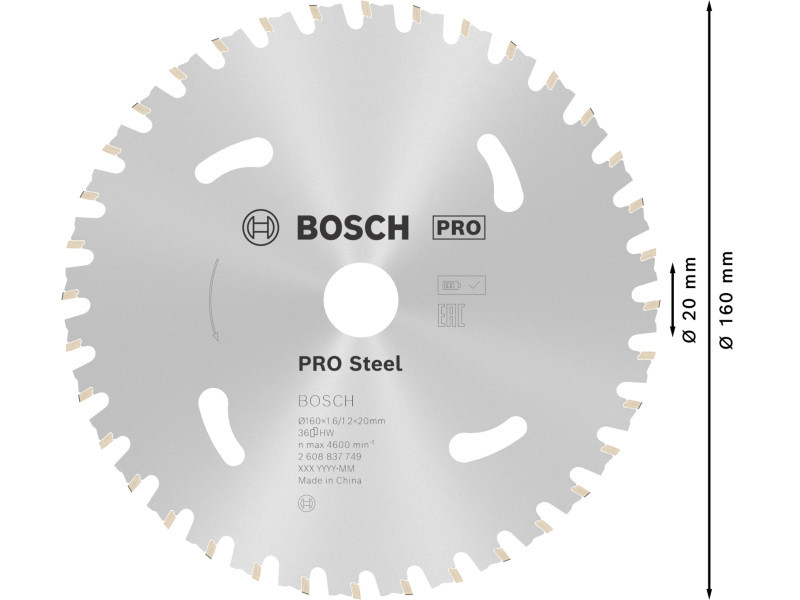 BOSCH PRO Fűrésztárcsa fémre 160 x 20 x 1,6 mm / 36T