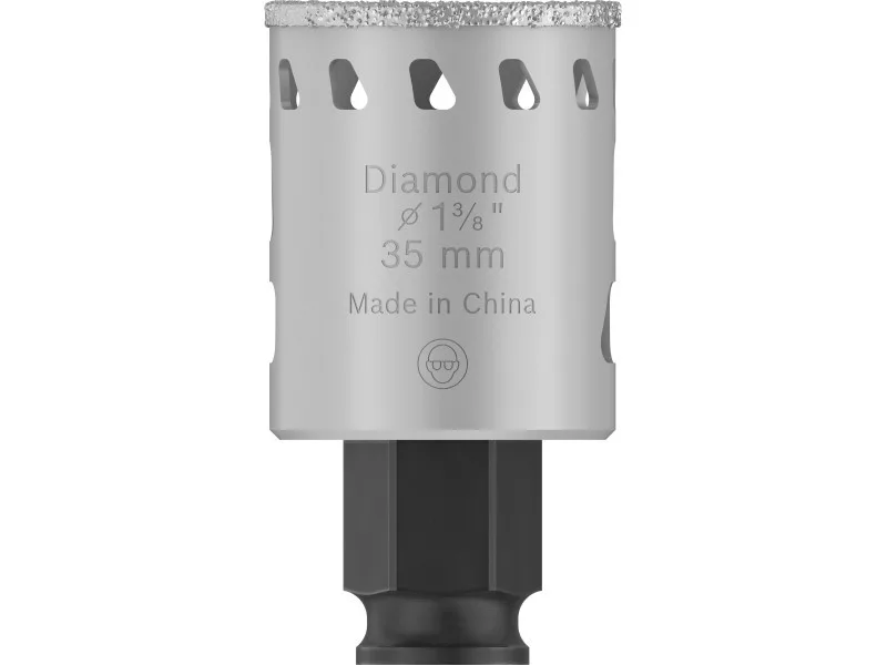 Körkivágás csempében, hosszú élettartammal Kiváló minőségű gyémántszemcsék a tartósság érdekében A Bosch Power Change Plus kulcs nélküli befogótüskével való használathoz: pontos és strapabíró Kiváló minőségű gyémántszemcsék a tartósság érdekében Forrasztott szemcsék a maximális szilárdság érdekében A hőelvezető nyílások eloszlatják a nem kívánt hőfelhalmozódást, így biztosítva a tartós teljesítményt Bosch Power Change a hatékony magkiadáshoz és a körkivágók hatékony cseréjéhez Folytonos vágóél a könnyű vágás érdekében