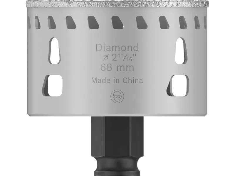 Körkivágás csempében, hosszú élettartammal Kiváló minőségű gyémántszemcsék a tartósság érdekében A Bosch Power Change Plus kulcs nélküli befogótüskével való használathoz: pontos és strapabíró Kiváló minőségű gyémántszemcsék a tartósság érdekében Forrasztott szemcsék a maximális szilárdság érdekében A hőelvezető nyílások eloszlatják a nem kívánt hőfelhalmozódást, így biztosítva a tartós teljesítményt Bosch Power Change a hatékony magkiadáshoz és a körkivágók hatékony cseréjéhez Folytonos vágóél a könnyű vágás érdekében
