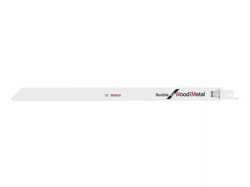 Erőfeszítés nélküli merülővágás - Az S 1222 VF Flexible for Wood and Metal szablyafűrészlap fa és fémek erőfeszítés nélküli merülővágására alkalmasVario fog geometriájával a szablyafűrészlap ideális a sima, rázásmentes vágáshozTovábbá a fűrészlap standard (0,9 mm) vastagságú anyaga és hossza kiválóan alkalmassá teszi a fűrészlapot merülővágásraA BIM (bimetál) fűrészlapot úgy optimalizálták, hogy átvágja a fában lévő lágyvas szegeket, lágy acél és nemvas fém alkatrészeket isStandard hosszúsága 300 mm, ami 250 mm vágáshosszt tesz lehetővé1/2 hüvelykes univerzális befogószár rendszerű szablyafűrészekhez használhatóMinden S befogószárú szablyafűrészhez használható