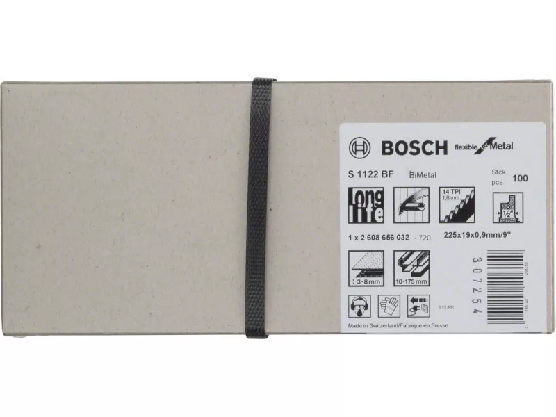 Merülővágáshoz optimalizálva - Az S 1122 BF Flexible for Metal szablyafűrészlapot fémek merülővágására optimalizálták225 mm-es hossza és standard, 0,9 mm-es anyagvastagsága kiváló minőségű merülővágásra teszi alkalmassáTovábbá fogosztása 1,8 mm, ami nagy sebességű vágást tesz lehetővéBIM (bimetál) anyagával a fűrészlap kialakítása normál szilárdságú acélanyagok vágásához használható, míg 1,8 mm-es fogosztása miatt ideális a 3–8 mm falvastagságú csövek és profilok vágásáhozA fűrészlap standard hossza 225 mm, ami legfeljebb 175 mm-es vágáshosszt tesz lehetővé1/2 hüvelykes univerzális befogószár rendszerű szablyafűrészekhez használhatóMinden S befogószárú szablyafűrészhez használható