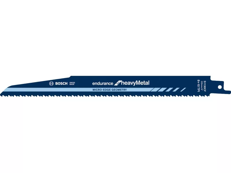 Nagy teljesítményű, irányított bontás - Az S 1130 CF Endurance for Metal szablyafűrészlap fémek nagy teljesítményű, irányított egyenes vágására alkalmas, kiváló fűrészlap-élettartam mellettSzéles lapja (22 mm) és extravastag anyaga (1,6 mm) biztosítja a fémszerkezetek bontásához szükséges kiváló stabilitástA maximális élettartamot garantálja továbbá a mikroélekkel kialakított foggeometria a precíziós köszörült fogaivalA sebességet és a fűrészlap élettartamát tovább növeli vastag anyagok vágásánál a ritka, 2x2 fogosztású geometriaA bimetál fűrészlap normál szilárdságú acélanyagok vágásához használhatóRitka (2,5+3,2 mm) fogosztása alkalmassá teszi 4–12 mm falvastagságú csövek és profilok vágásáraA fűrészlap standard hossza 225 mm, ami legfeljebb 175 mm-es vágáshosszt tesz lehetővé1/2 hüvelykes univerzális befogószár rendszerű szablyafűrészekhez használhatóAz S 1130 CF Endurance for Metal szablyafűrészlap ideális a csővágó eszközökkel való használatraMinden S befogószárú szablyafűrészhez használható