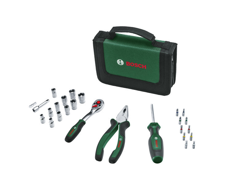 A kompakt társ számos barkácsolási feladathoz az úton 26 darabos készlet 1 hüvelykes racsnival, kombinált fogóval, univerzális csavarhúzóval, bitekkel stb. Kényelmes tárolás praktikus cipzáras szövettokban A kiváló minőségű anyagok hosszú élettartamot biztosítanak Kitűnő ergonómia az optimális irányítás és kényelem érdekében Az ideális mindenes szerszámkészlet háztartási javításhoz és karbantartáshoz