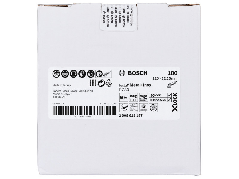 Kiváló anyaglehordási arány - Az X-LOCK R780 Best for Metal and Inox fíber tárcsa kiválóan alkalmas gyors anyageltávolításra fém- és Inox felületek csiszolása során.Önélező kerámiaszemcsés technológiája új, éles vágóéleket hoz létre csiszoláskor, és a durva szemcsék maximális anyageltávolítást, a finomabb szemcsék állandó felületminőséget garantálnak, tárcsakopás nélkül.A tárcsa vastag, hűtő adalékanyagot tartalmazó bevonattal rendelkezik, mely ideális eszközzé teszi Inox és lágyacél felületek csiszolására.Hordozóanyaga vulkánfíber, amely stabilitást biztosít a csiszolás során.Az X-LOCK csiszolótárcsák a standard sarokcsiszolókkal is használhatók.A fíber tárcsák cseréje gyors és kényelmes, a kulcs nélküli X-LOCK rendszernek köszönhetően.A tárcsák X-LOCK vagy standard gumi alátéttányéron rögzíthetők.Megfelelő alátéttányérral való használatra.