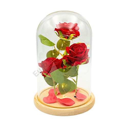 BÁRSONY RÓZSÁK ÜVEGBÚRÁBAN 1/8 17x26 cm LEDES