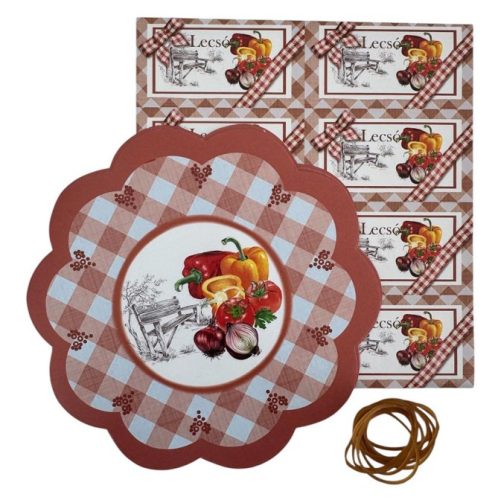 Befőtt díszítő csomag A csomag tartalma: -10db öntapadós címke a befőttes üveg oldalára (8,5 x 4,5 cm)-10db befőttes gumi -10db befőtt címke tetőre (17,5 cm átmérőjű)Az ár egy csomagra vonatkozik!
