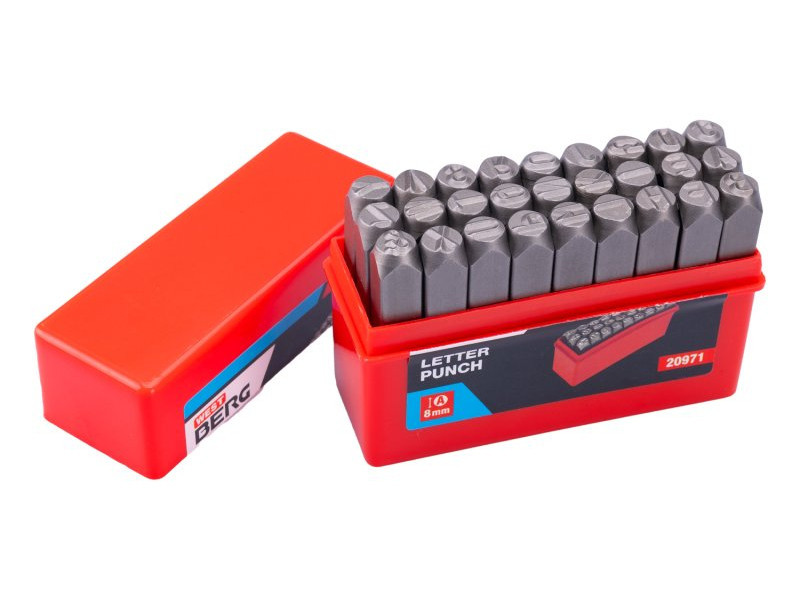Kézi lyukasztó - ábécé betűi, kiváló minőségű szénacél - szilárdság 800 N/mm2-ig, zavaros csúcsok - nagy keménység, méretek: betűmagasság - 8 mm, karaktertípusok DIN 1451 szerint, csomagolás: műanyag doboz.