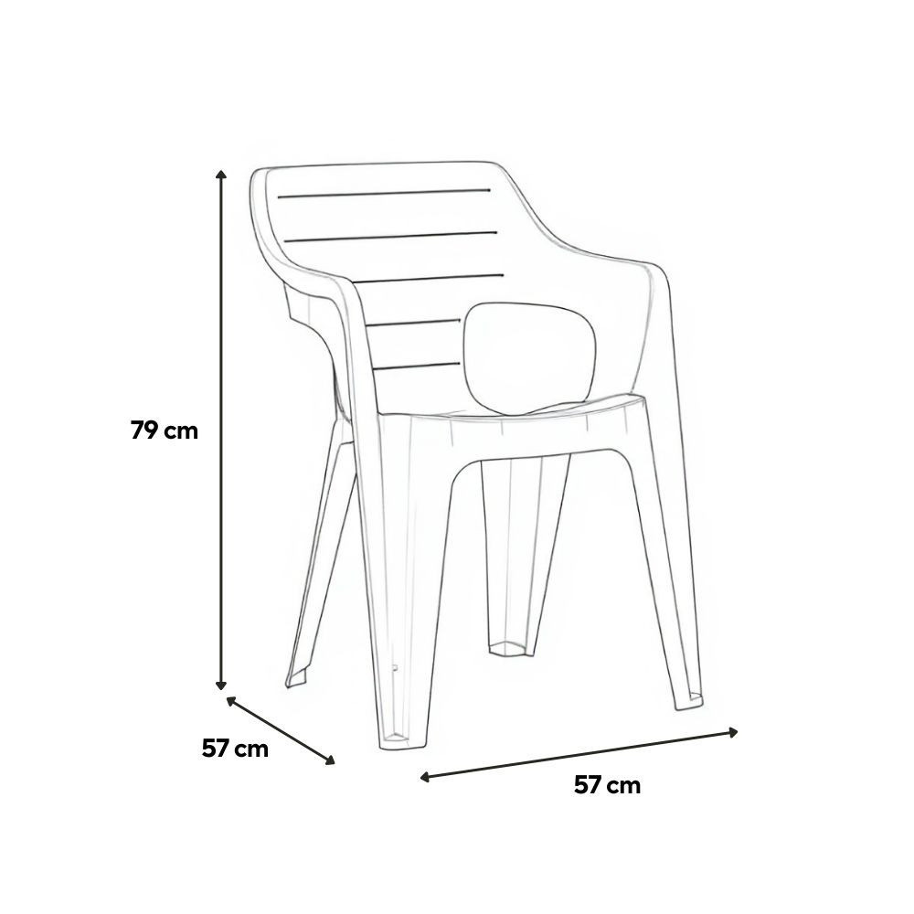 A Keter Bilbao Lowback műanyag kartámaszos kerti szék nemcsak esztétikus, hanem okosan praktikus is. A vízelvezető nyílás gondoskodik arról, hogy az eső vagy öntözés után ne maradjon víz a felületen, így mindig használatra kész. Az egymásra rakható kialakításnak köszönhetően pillanatok alatt helyet szabadíthatsz fel, ha épp nincs szükség az összes székre. Az időjárásálló műanyag garantálja, hogy éveken át stílusos marad – sem nap, sem eső nem fog ki rajta.