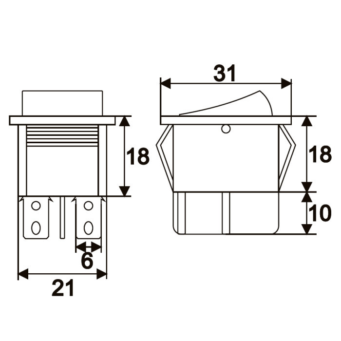 Kapcsoló mérete: 31 x 25,5 mm