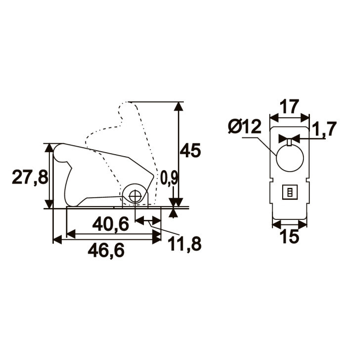 Átlátszó színű biztosító sapka kapcsolókra. Segítségével megakadályozható a véletlen kapcsolás. Rugós kivitel.
