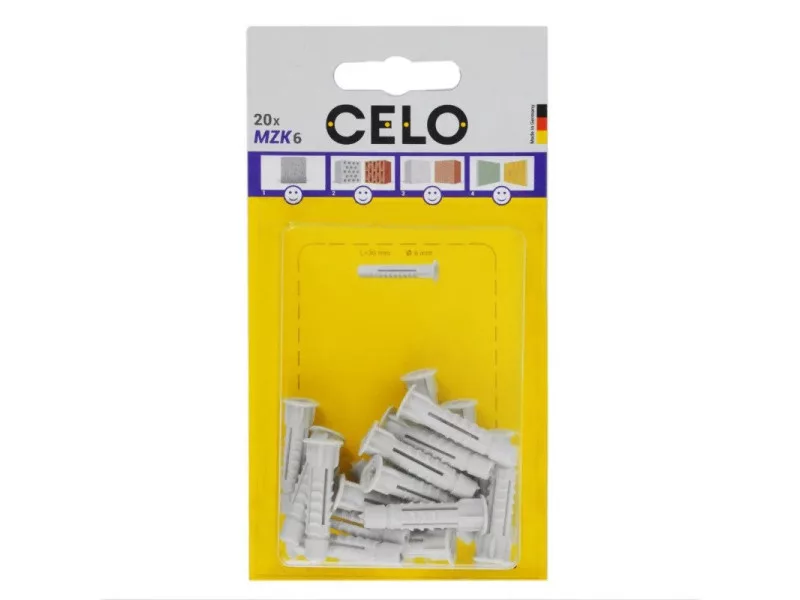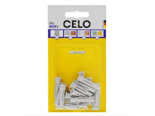 A CELO MZK univerzális galléros dübel milliószor bizonyította kiválóságát és szinte az összes építőanyagban használható. A dübel 4 irányú tágulása a tömör anyagokban és csomózó effektusa üreges építőanyagokban és gipszkartonban, mindig megfelelő rögzítést biztosít magas terhelhetőséggel. A gallér megakadályozza a dübel furatba csúszását. Kompatibilis különböző típusú és méretű csavarokkal. Kiváló minőségű polietilént tartalmaz, amely garantálja az MZ univerzális dübel tartós rugalmasságát.
