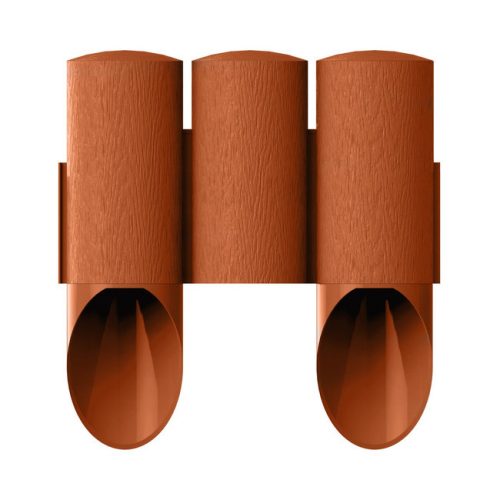 Ellenálló műanyagból készült, téglavörös, fa erezetű 3 tagos ágyásszegély. 3 db/csomag