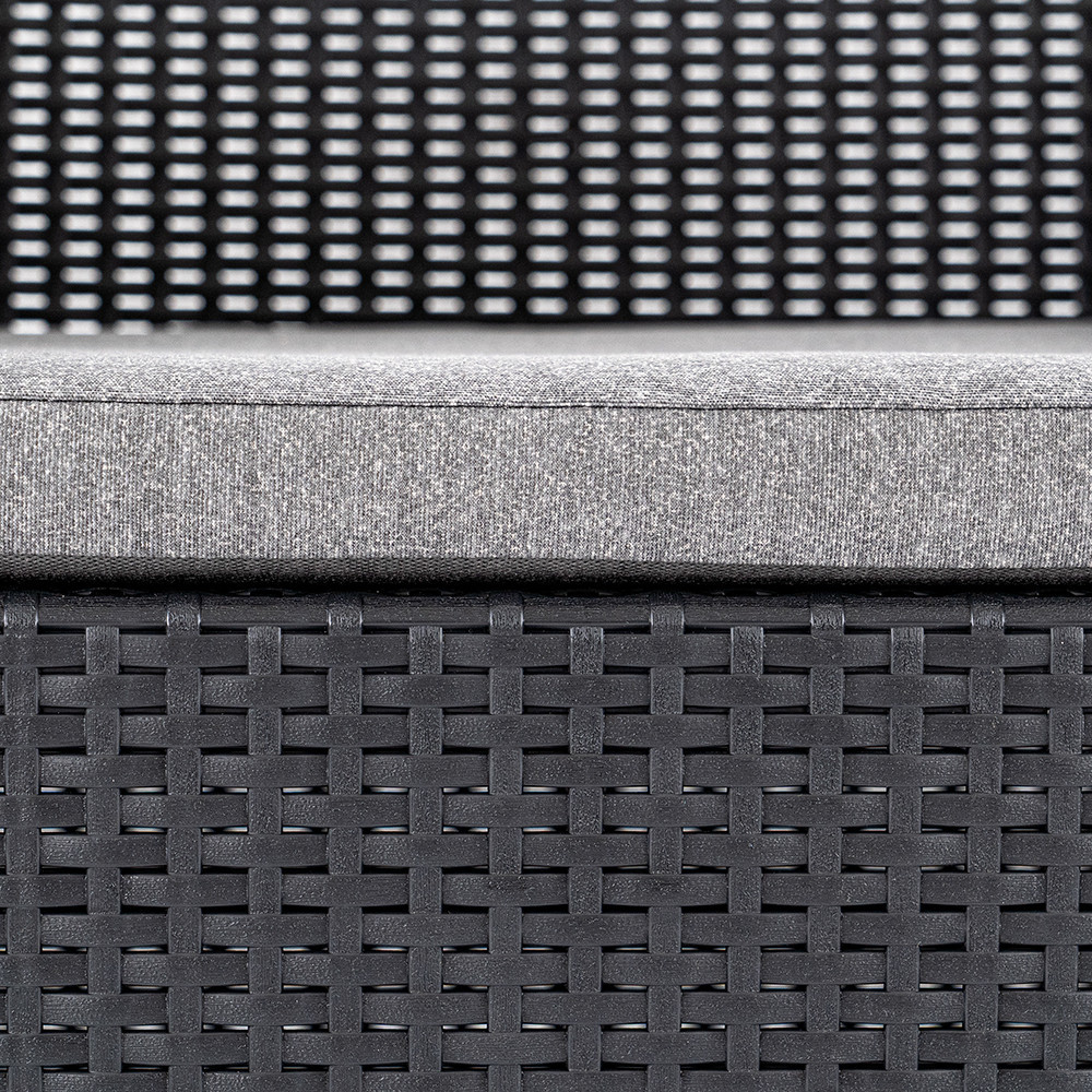 A grafit színben kapható kerti kanapé könnyű, egyben tartós vázszerkezettel büszkélkedik. Mindennek tetejében roppantul könnyen tisztítható minden egyes eleme, így pillanatok alatt makulátlanná varázsolható az összkép.