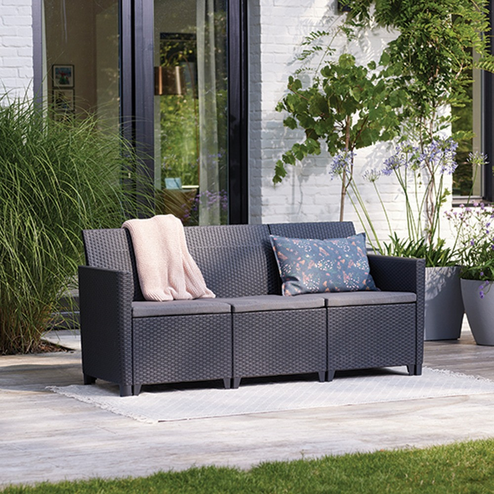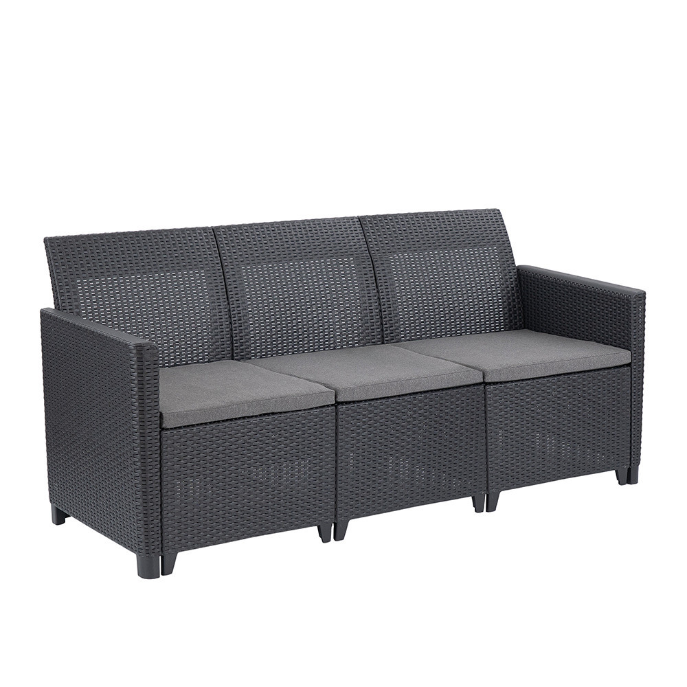 A grafit színben kapható kerti kanapé könnyű, egyben tartós vázszerkezettel büszkélkedik. Mindennek tetejében roppantul könnyen tisztítható minden egyes eleme, így pillanatok alatt makulátlanná varázsolható az összkép.
