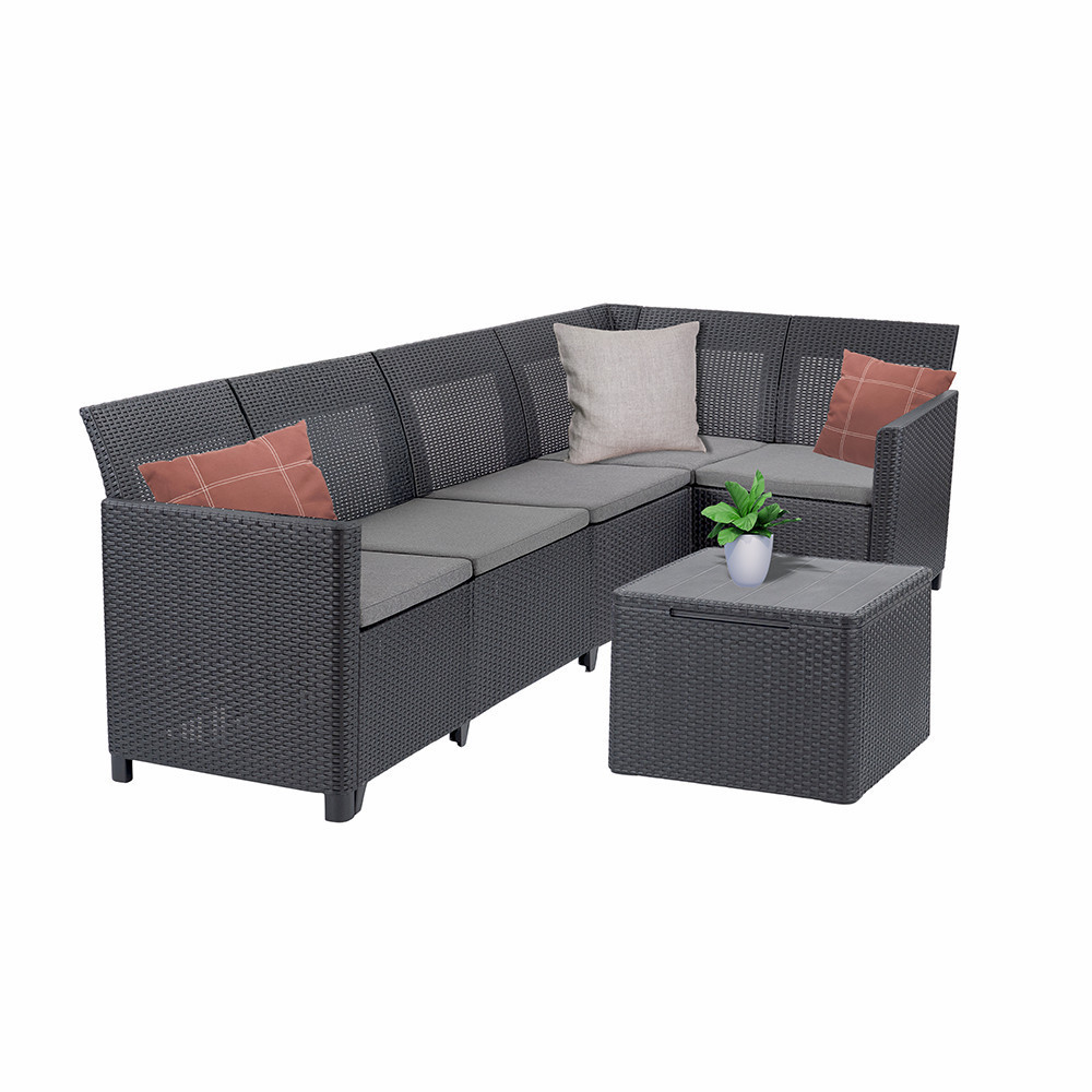 Válaszd a CLAIRE sarokgarnitúrát, és teremts egy kényelmes sarkot a teraszodon, ahol a család és barátok egyaránt élvezhetik a társaságot és a friss levegőt.