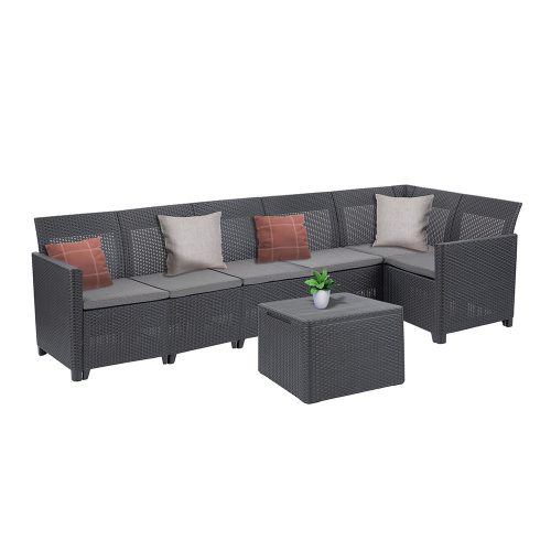 Claire VIII 6 személyes sarokgarnitúra párnatartós asztallal grafit