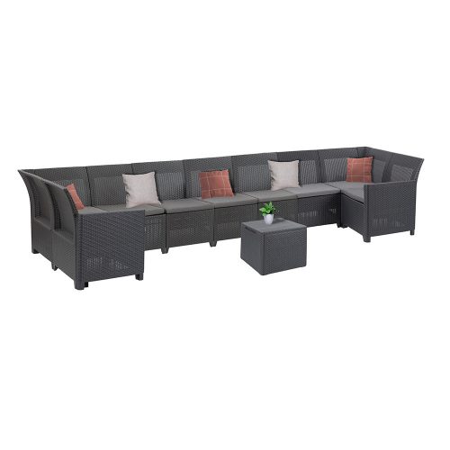 Claire X 9 személyes sarokgarnitúra párnatartós asztallal grafit