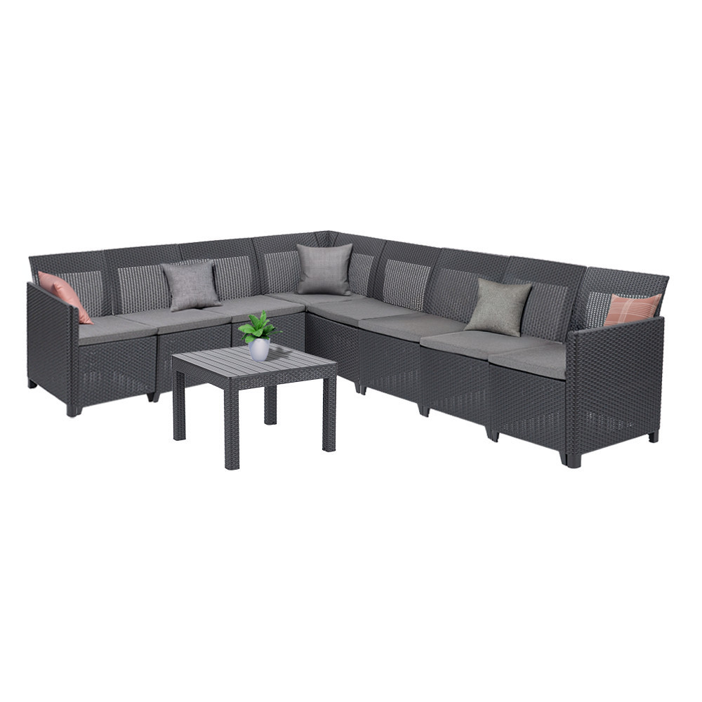 A modern, sötétszürke rattan hatású felület esztétikus és rendkívül időjárásálló – nem fakul, nem reped, és még UV-védelemmel is rendelkezik. A puha ülőpárnák a csomag részei, így rögtön használatba is veheted.