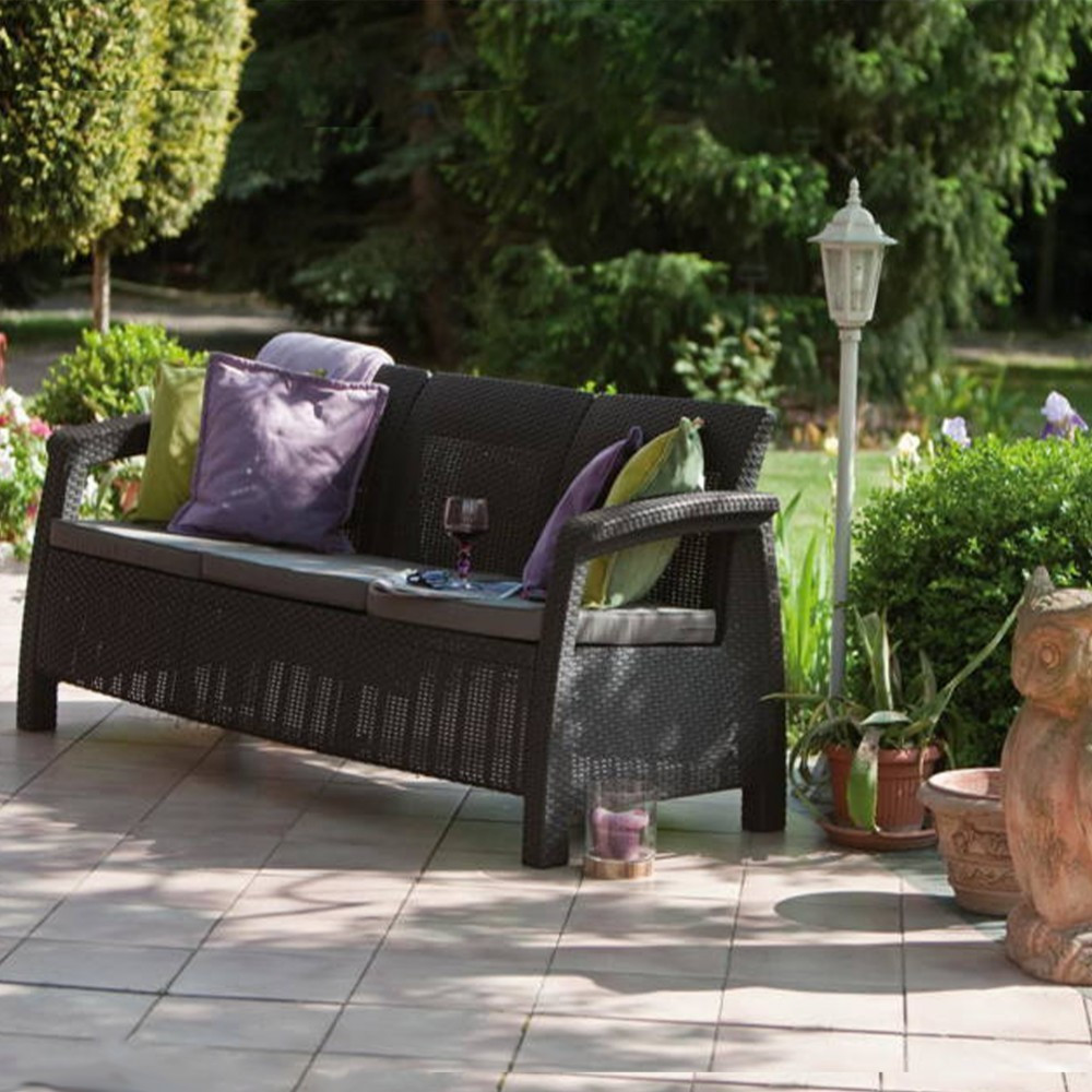 A bútorok legfontosabb előnye a kényelme. A Corfu Love Seat Max kanapé profilos háttámlákkal, széles kartámaszokkal és lapos üléspárnákkal rendelkezik - amelyeknek köszönhetően élvezhetjük annak kényelmét, függetlenül attól, hogy kávét iszunk, újságot olvasunk vagy napozunk. A párnák ideálisan illeszkednek az ülések méretéhez és 6 cm vastagok.A kanapé ülőhelyenként képes 300 kg - 100 kg súlyt megtartani . Kivételes tulajdonságai a polipropilén - egy rendkívül tartós műanyag . Az anyag ismert a magas hőmérséklet, víz- és UV-sugárzás káros hatásainak ellenállásáról . Ez lehetővé teszi a bútorok intenzív színének és szép alakjának fenntartását, még akkor is, ha egész évben a szabadban áll. Az anyag tartósságának köszönhetően több éven át megcsodálhatjuk a kanapé szépségét. Az üléspárnákat megfelelően impregnálták, hogy nagyobb vízállóságot biztosítsanak. Noha az erős eső nedvesíti őket, mint bármely más párnát, a kis szitálás vagy a kiömlött ital semmilyen módon nem fogja tönkretenni.
