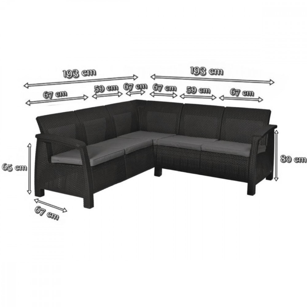 A sarokkanapé nagyon kényelmes. A magas, profilozott háttámla, a széles kartámaszok és a puha üléspárnák garantálják a megfelelő használat kényelmét. Az alacsony lábak lehetővé teszik a bútorok kényelmes elrendezését kis egyenetlenségeken . A sarok hosszú oldalai lehetővé teszik, hogy kényelmesen fekvő helyzetbe kerüljön, vagy egyszerűen csak rövid ideig szundítson. A sarokülések mindegyike körülbelül 100 kg-ot képes elviselni - a bútor teljes szilárdsága körülbelül 500 kg . Mivel az összes bútorelemet gyárilag fröccsöntéssel készítik, minden alkatrész ugyanolyan gondosan készül, mint a többi . A bútorok minden centiméterét tökéletesen ábrázolják a polyrattan fonott vonalak - az emberi hibákat a lehető legkisebbre csökkentik. A bútorok nem tartalmaznak burkolatot, mivel nincs szükség takarásra.