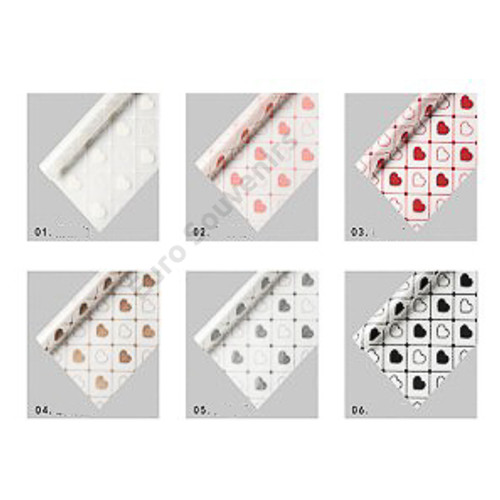 CSOMAGOLÓFÓLIA 20 DB SZÍVES 1/80 58x58 cm 6 SZÍNBEN